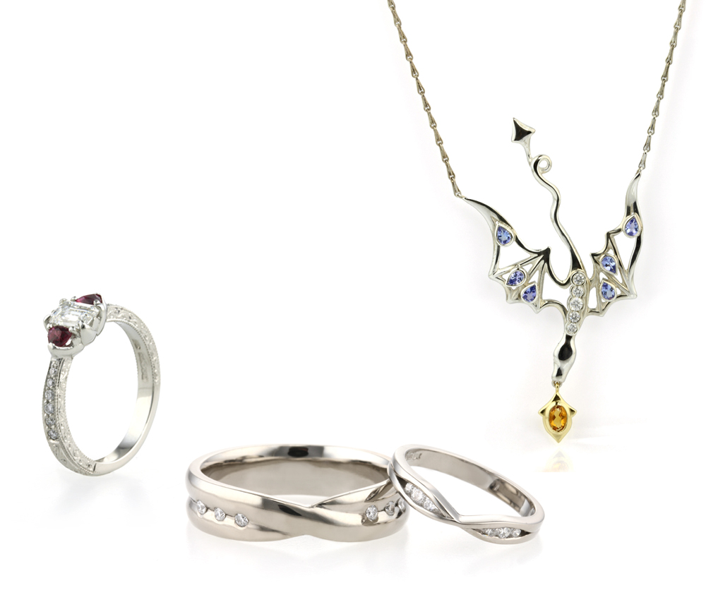 Whether you are looking for a wedding ring to fit perfectly around your engagement ring or you would like an engagement ring to surprise your loved one. Aimee can design and make your ring, pendant or earrings as your gift or a treat for yourself.